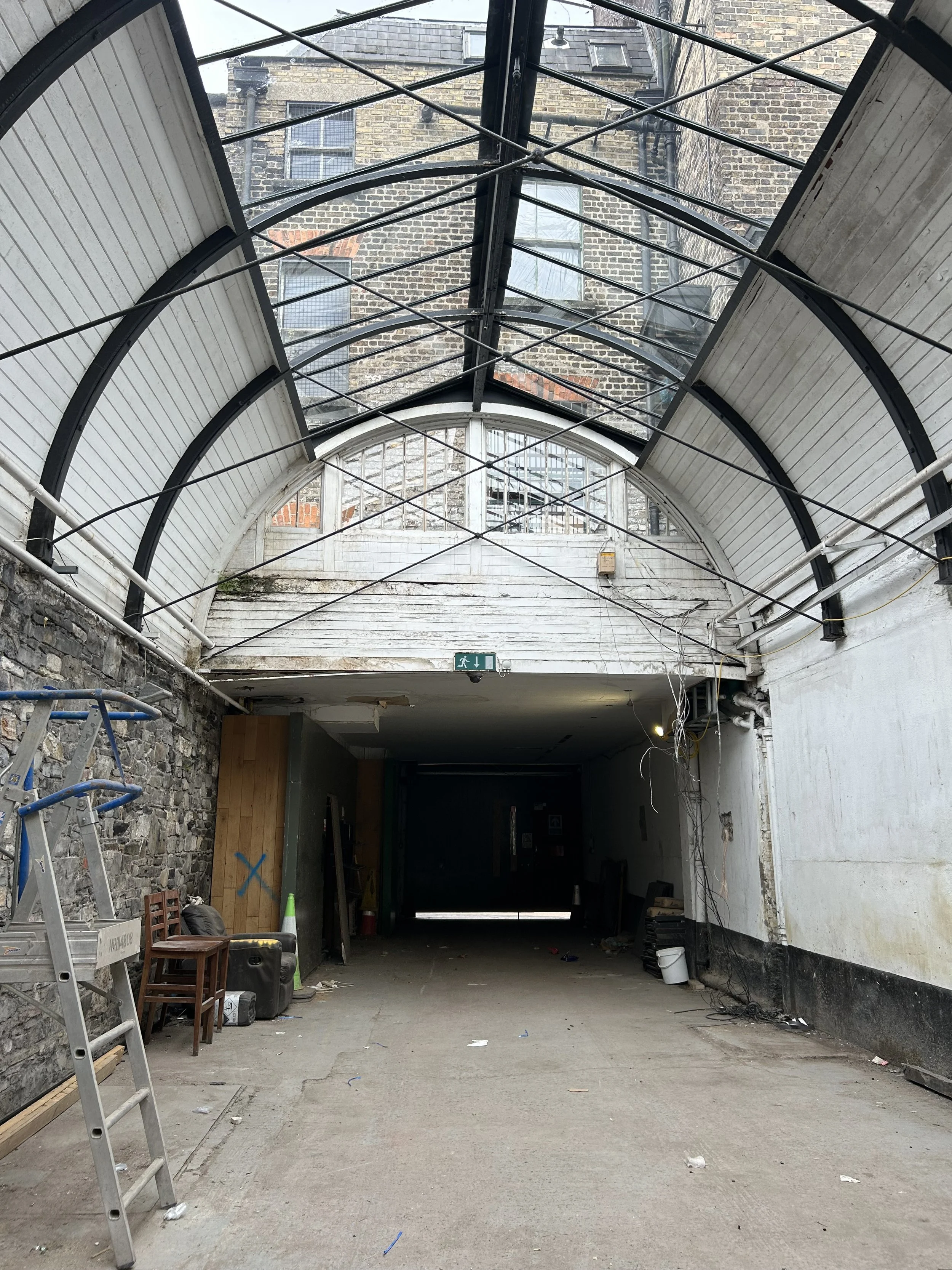 The building range occupies a hinterland site largely imperceptible from the enclosing network of streets, currently discreetly accessed from three entrances; through/ under a covered alley at No. 133 Capel Street, at No.7 Meetinghouse Lane and at No.23 Little Mary Street.